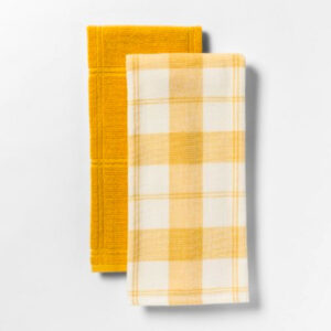 2-pk Threshold Checked w/Solid Kitchen Towel, Yellow