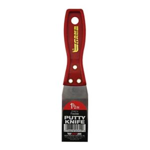 This 4-1/2 in. taping knife is made of tempered steel. It has a flexible spring steel blade and a plastic handle. It is flame and solvent proof. It is best for use in spackling, scraping, spreading and stripping.